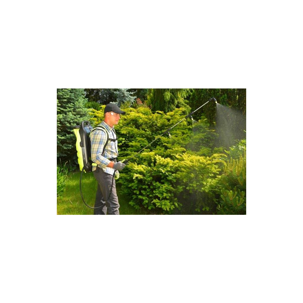 Je vybaven zvukovou signalizací, díky čemu je práce více efektivní a bezpečná. Zahradní postřikovač aku je vybaven ergonomickými a nezvykle pohodlnými voděodolnými popruhy.