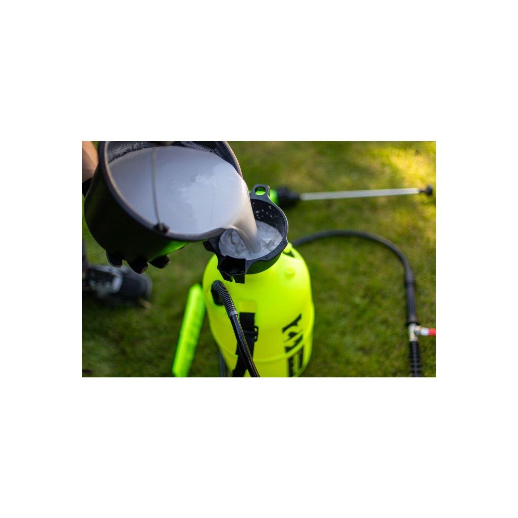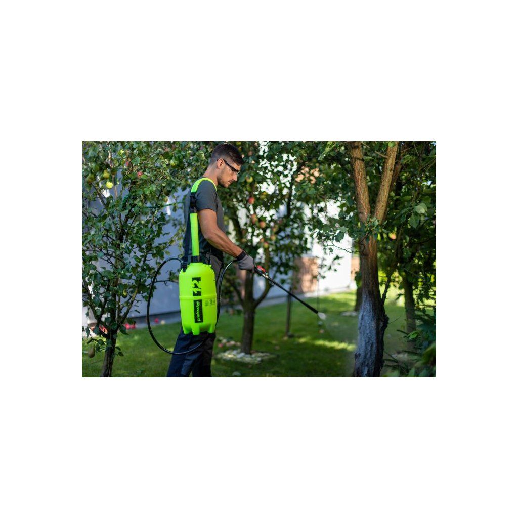 - Výbava: Postřiková tyč 44 cm s regulovatelnou tryskou MR1.5 o průměru 1,5 mm. Prodlužovací tyč o délce 60 cm. Uzávěr s rukojetí (klasický postřik). Uzávěr s kulovým ventilem (na bílení) 3/8". Trychtýř se sítkem pro filtraci kapalin. Silikonové mazivo. Míchadlo kapaliny. Pumpa s úchytem pro přenášení. Malá sestava výměnných dílů. Hadice v délce 170 cm.