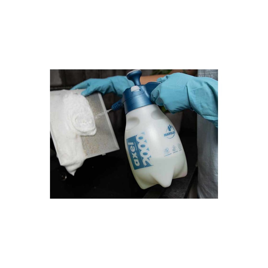 Pěnovač Axel 2000 je inovací v postřikovačích firmy Marolex. Má ergonomický tvar pro pohodlnější používání. Hustotu pěny lze regulovat pomocí tří různých vyměnitelných vložek, které jsou součástí balení. Těsnění v pěnovači je EPDM - výborně snáší široké spektrum čistících prostředků. Nádoba má obsah 2 litry.